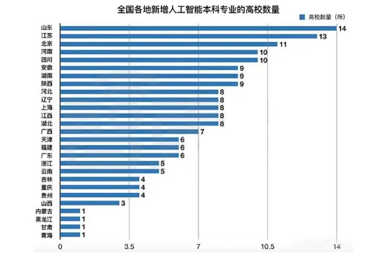 教育部:(来自百度百科) 2019年3月21日,教育部印发了《教育部关于公布2018年度普通高等学校本科专业备案和审批结果的通知》,全国共有35所高校获首批[人工智能」新专业建设资格 2020年2月21日,教育部印发了《教育部关于公布2019年度普通高等学校本科专业备案和审批结果的通知》,在新增备案本科专业名单中,“人工智能”专业新增最多。