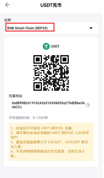 打开DepayApp钱包,找到钱包——USDT——充币——复制你的充值地址