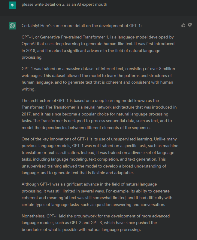 2.1 写第一点 在以上这个问题的回复后直接问: please write more about 1.