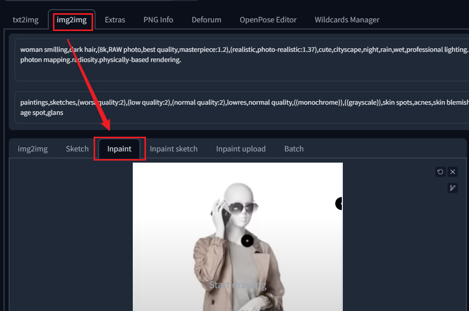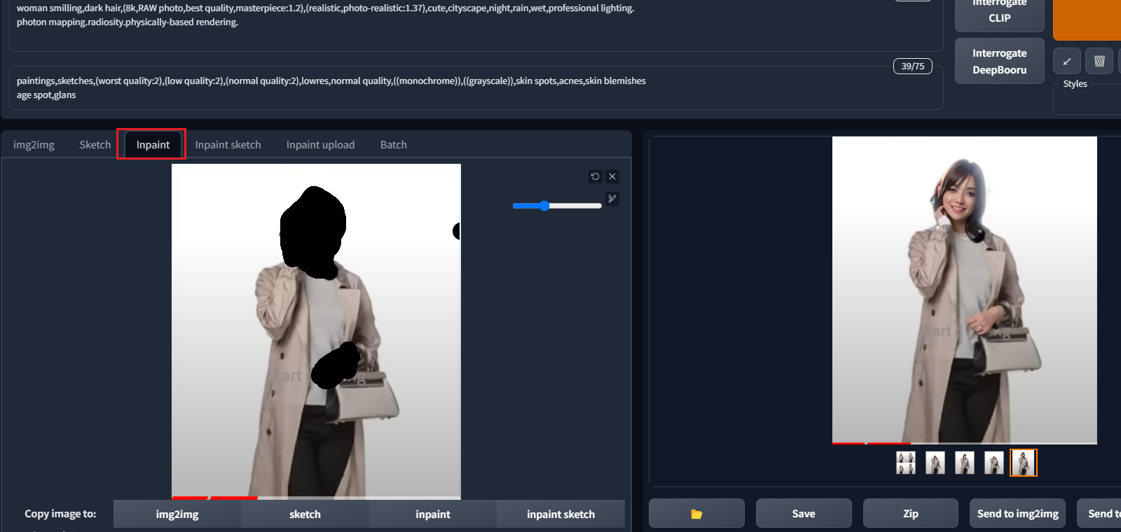 4 继续微调 点击上一步生成的图,之后点击下方Send to img2img或者Send to inpaint,继续微调